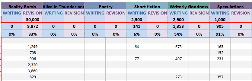 We’ll see what I can do in the next week, but I’m not set on winning this year. This is just motivation for me to get back to a more regular practice. As you can see, I’ve only set myself a goal of writing 36,000 words on my spreadsheet. I think that’s reasonable, but what I often think is reasonable turns out to be a stretch.