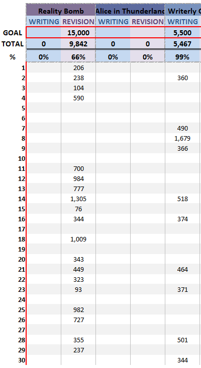 The only writing I did in the month was on this blog. I blogged 5,467 words of my 5,500-word goal, or 99%.