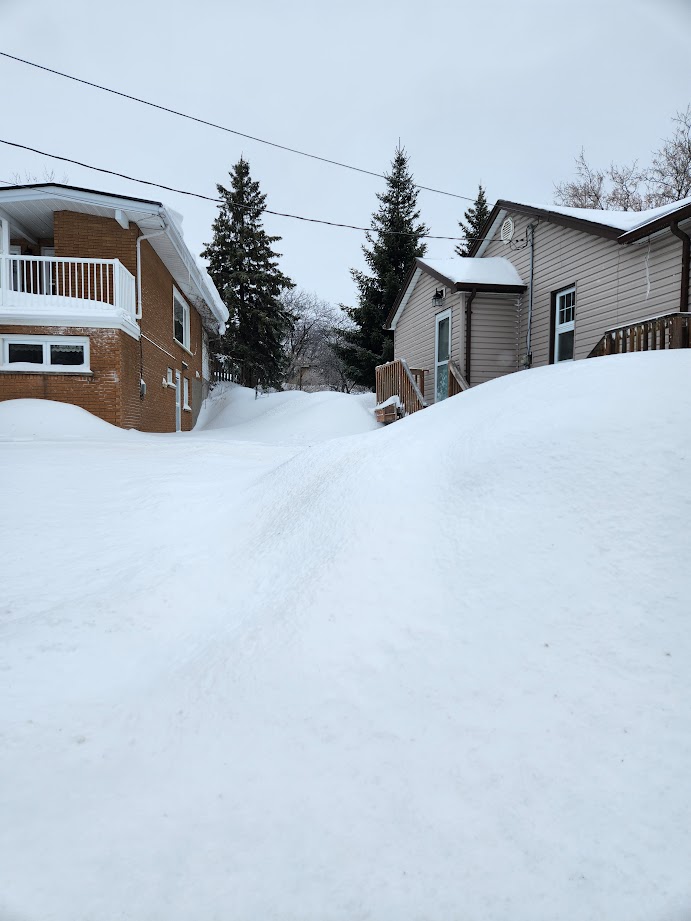 The entire city was shut down on Monday and though they were working hard, they could not guarantee when the snow would be cleared from side streets and sidewalks. Apparently, this winter has been one of the snowiest in Sudbury’s history with 5 metres’ accumulation. The last time we had this much snow was in 1959 (!) And the winter isn’t over yet. We often have snow into April or even May.