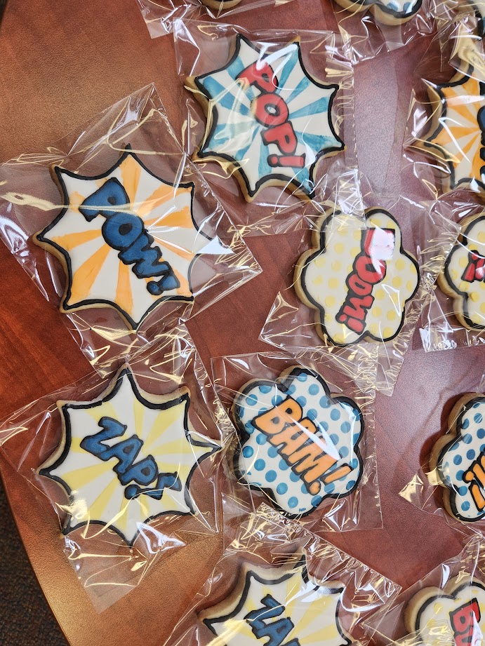 On the 21st, SuperCanucks launched! It was a super afternoon at the Greater Sudbury Public Library’s main branch with a gift basket raffle and swag and superhero-themed cookies from the Homemade Baking Company!